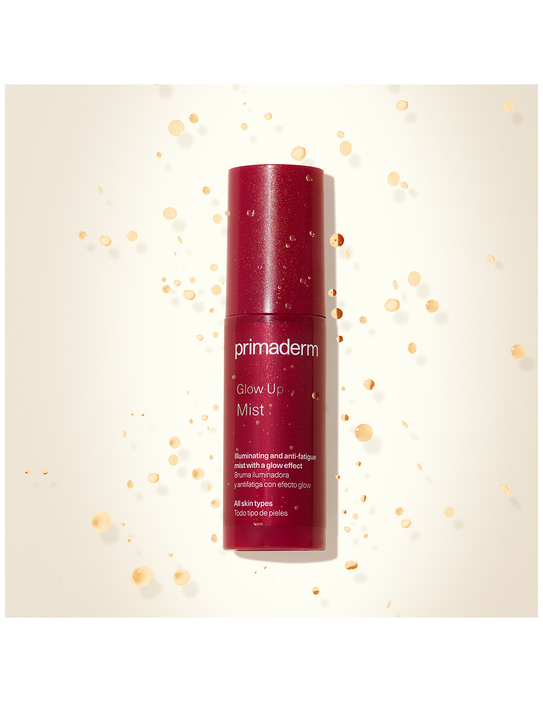 Bruma efecto glow que proporciona un extra de luminosidad, hidratación y protección antioxidante a tu rostro. Reduce el asplecto de los signos de fatiga, minimiza los poros y aporta un brillo radiante gracias a sus partículas soft-focus.