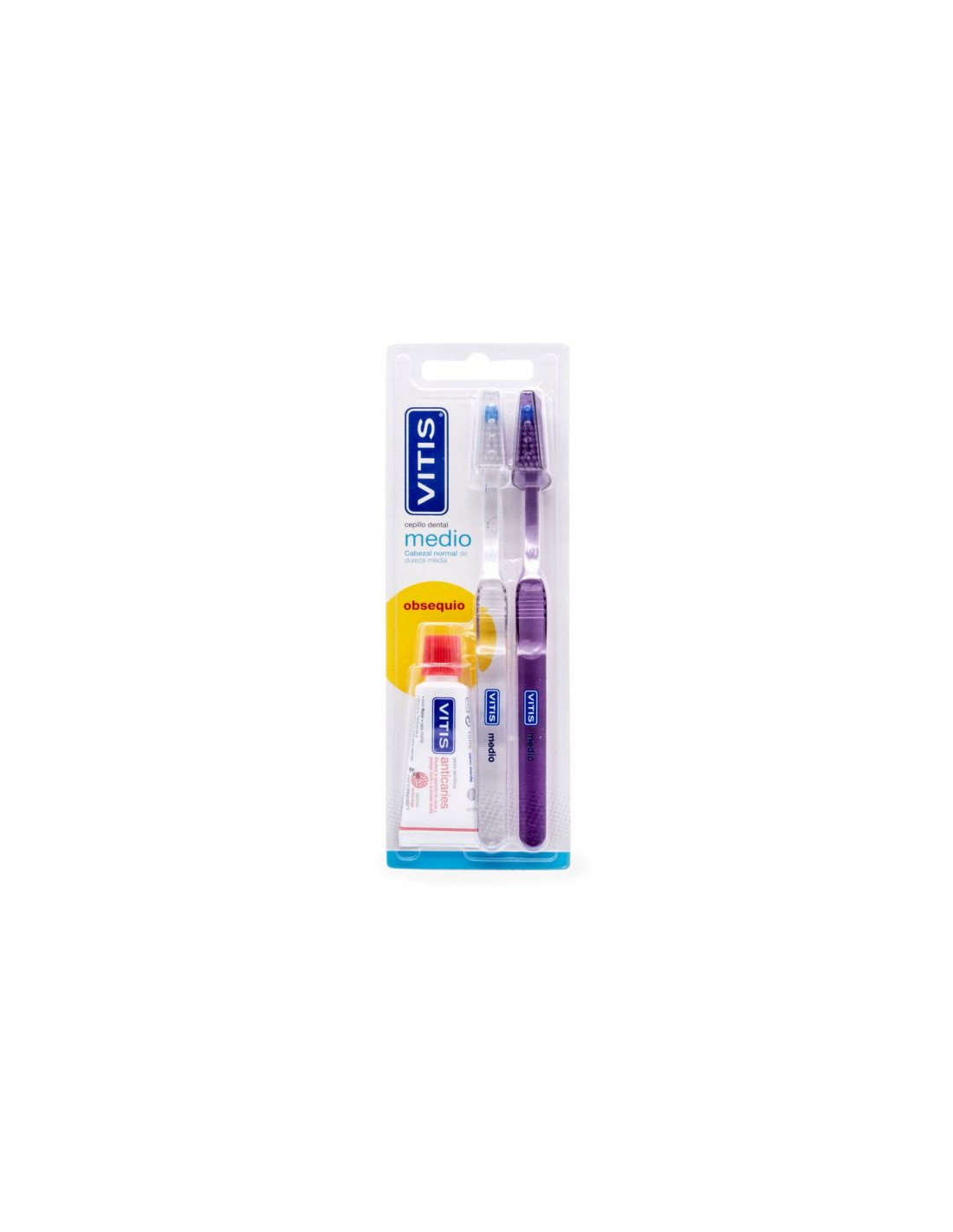 Vitis Cepillo Dental Medio 2 Unidades+Pasta Anticaries