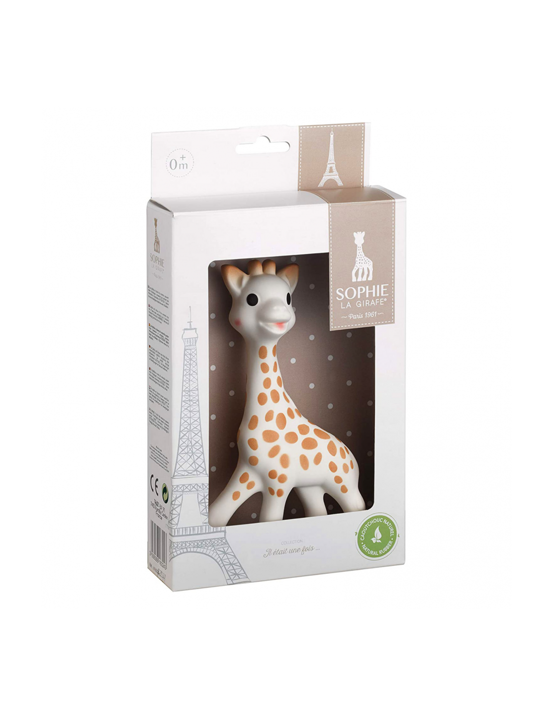De textura suave, con muchas partes para morder (las orejas, cuernos, patas), para calmar las encías del bebé durante la dentición. La Girafe Sophie es irresistible para los bebés.