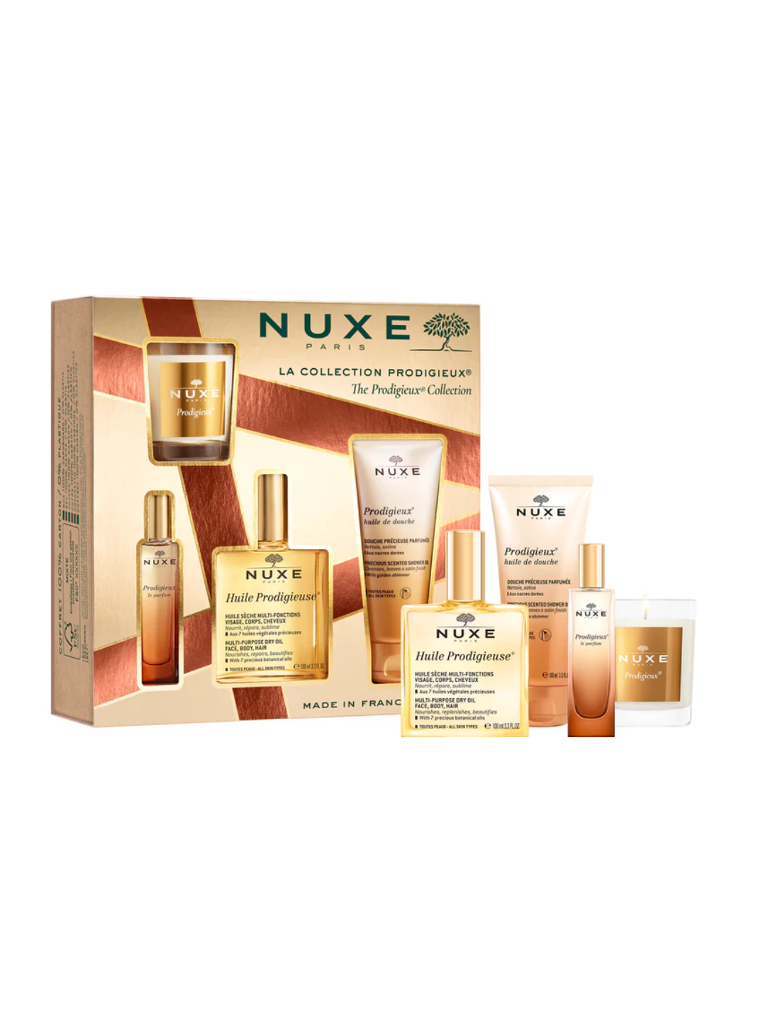 Déjate conquistar por la intensa sensorialidad de la gama Prodigieuse® con la fragancia solar icónica reunida en este Coffret Nuxe Prodigieux®: