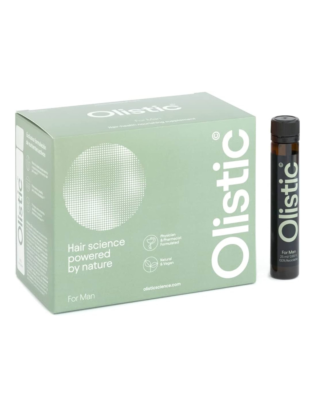Olistic es un complemento nutricional bebible diseñado para fortalecer, nutrir y combatir la caída del cabello masculino.