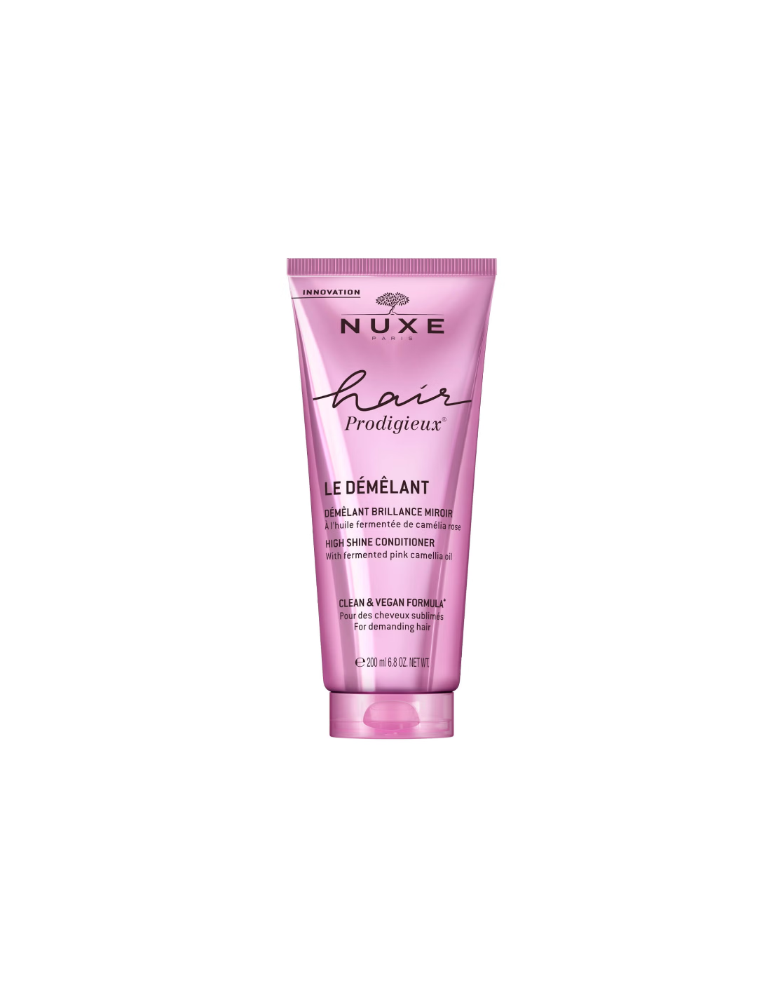 Fruto de la especialización de los Laboratorios Nuxe en aceites vegetales, el Acondicionador Brillo Sublime limpia y perfuma el cabello con suavidad. Formulado sin siliconas, este acondicionador, con aceite fermentado de Camelia rosa, nutre intensamente la fibra capilar. Su textura de bálsamo con la fragancia mítica de Huile Prodigieuse® envuelve el cabello en un ritual sensorial increíble. El cabello queda lleno de brillo y con un adictivo tacto sedoso.